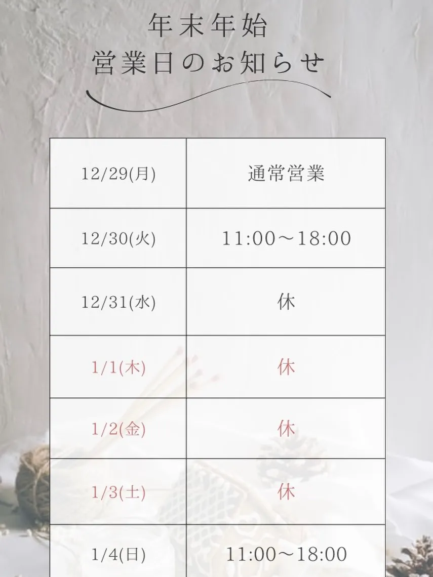年末年始営業時間のお知らせ✨